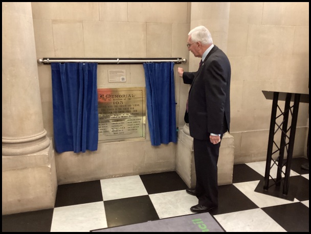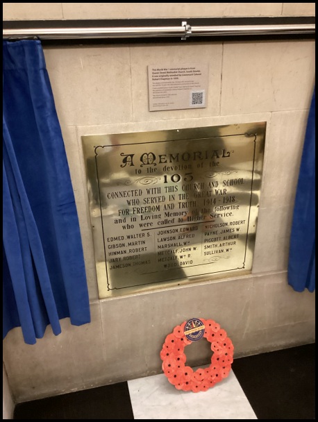 The plaque commemorates the 103 men who served in the War and the 16 men who died who had a connection to the Chapel.